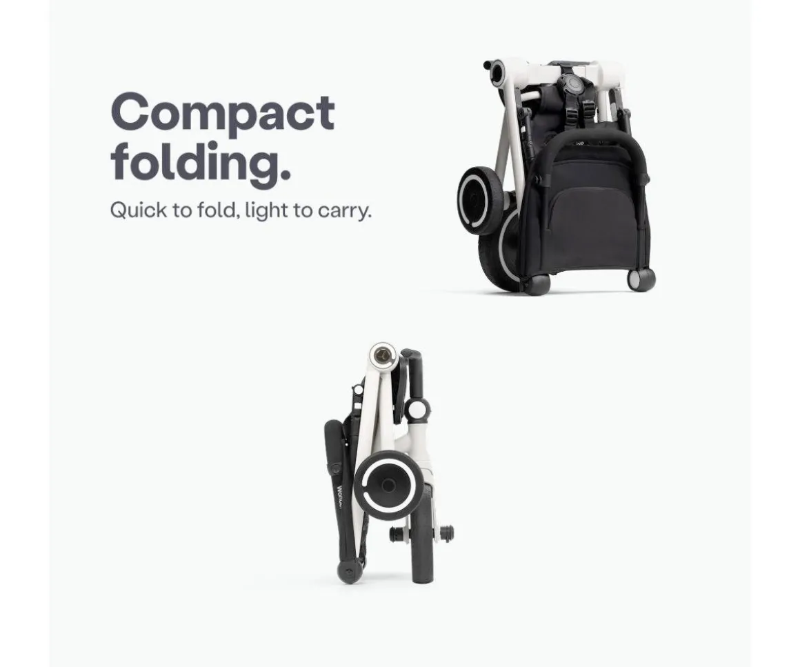 El Wonder se pliega en segundos hasta un tamaño compacto, ideal para almacenar, llevar en el maletero o incluso subirlo como equipaje de cabina en tus viajes en avión.