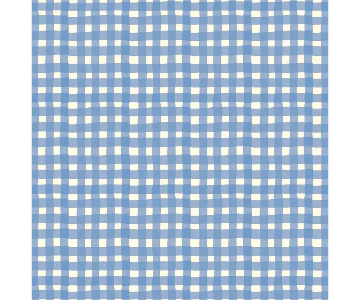 Vestido o camisón Sabrina de algodón con estampado vichy azul de Minikane para muñecos soft de 28cm