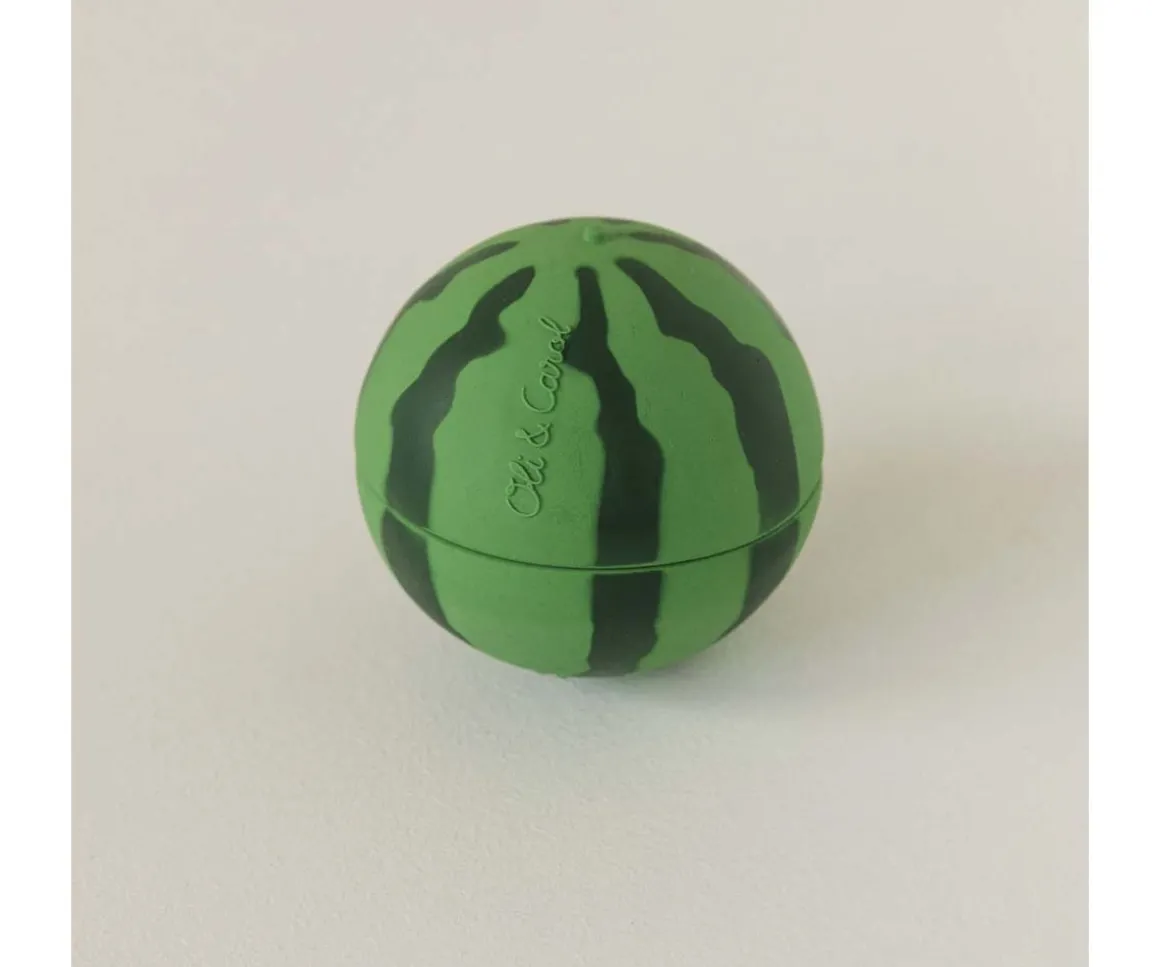 Wally the Watermelon de Oli&Carol es un juguete 3 en 1: apilable, sonajero y pelota. Fabricado en caucho 100% natural y relleno de huesos de cereza, estimula los sentidos del bebé con su suave sonido al agitarlo, mientras las piezas apilables fomentan el pensamiento lógico. Además, rueda y rebota para aportar más diversión al juego.