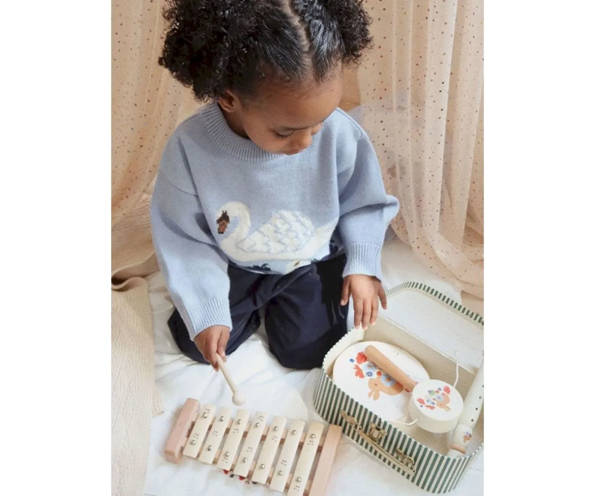Encantador xilófono musical de madera de Konges Slojd, perfecto para los más pequeños. Con sus vivos colores y simpáticos detalles, su estética captará la atención de todos.