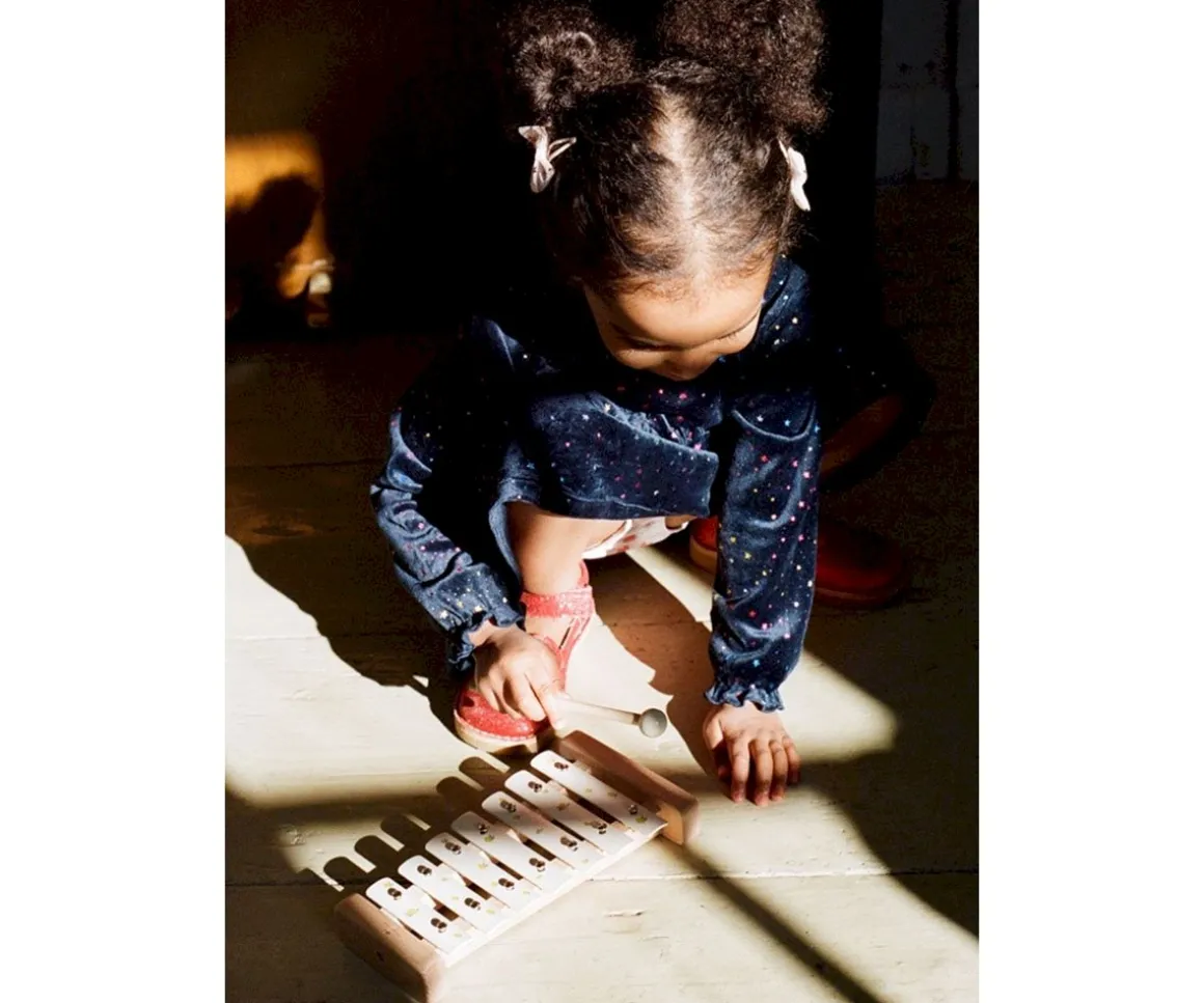 Encantador xilófono musical de madera de Konges Slojd, perfecto para los más pequeños. Con sus vivos colores y simpáticos detalles, su estética captará la atención de todos.